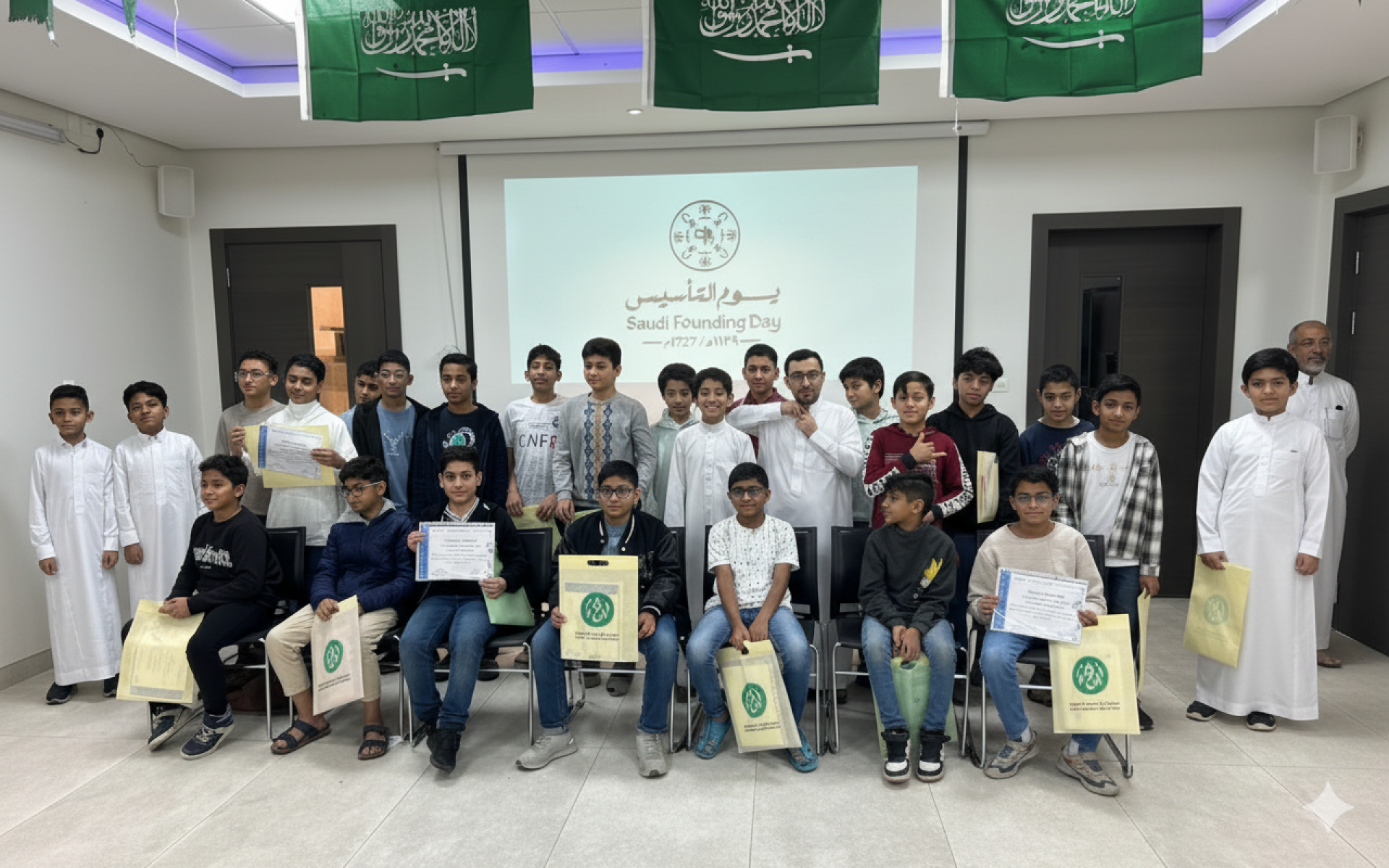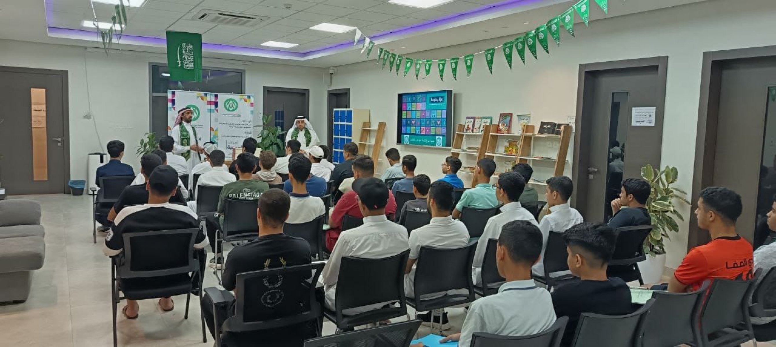 جانب من احتفال جمعية نبوغ لتنمية المواهب باليوم الوطني الـ95 خلال اليوم الختامي لدورة القدرات 1